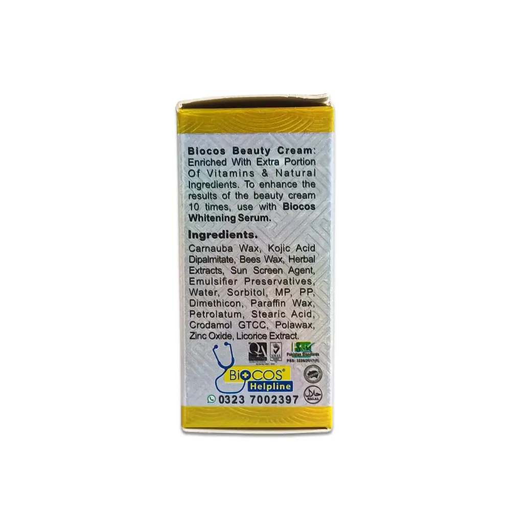 Biocos Whitening Beauty Cream: Enriched With Extra Portion Of Vitamins & Natural Ingredients. To enhance the results of the beauty cream 10 times, use with Biocos Whitening Serum.