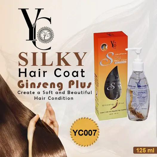 YC Silky Hair Coat with Sunscreen & Ginseng plus Formula has been especially developed for dry, brittle and damaged hair ends splitting hair ends. Enriched sunscreen to protect your hair from exposure to sunlight.